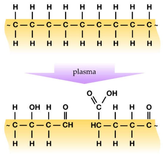 - Vesel, A.; Mozetič, M. New developments in Surface functionalization of polymers using controlled plasma treatments. J. Phys. D Appl. Phys. 2017, 50, 293001. [Google Scholar] [CrossRef]