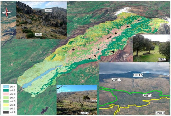 - Units adjacent and similar to the most representative neighboring units were unified, as long as the extension of the different units was not significant.