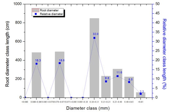 3.2. Root Length in Various Diameter Classes (Exp. 1)