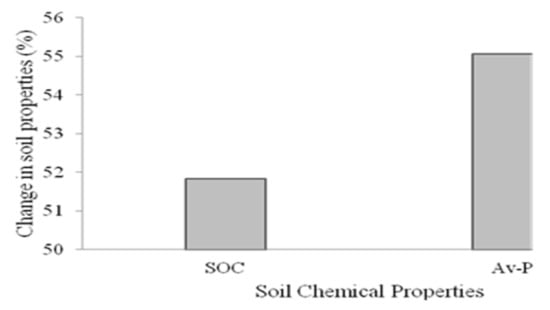 The increase in soil chemical properties due to natural rehabilitation of degraded land by exclosure within overall depth (0–40 cm). SOC refers to soil organic carbon; Av.P refers to available phosphorus.
