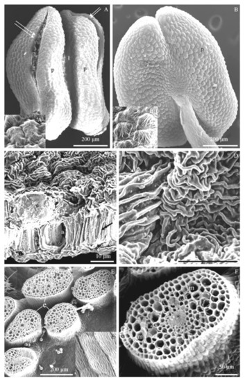 Pollen is a rich source of various biologically active chemical compounds with health-enhancing values and phytotherapeutic effects [9,10]. The health-promoting properties of pollen confirm the relevance of its use in pharmaceutical, cosmetic, and food industries [11,12,13]. Considerations of the potential use of pollen as a component of functional food should take into account the structure of the anther, which serves as a protective and nutritional function for maturing pollen grains as well as the structure of the pollen grain wall, mainly the sporopollenin-saturated exine [14,15,16,17,18].