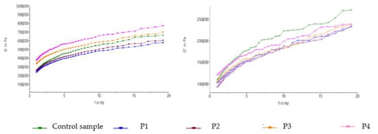 It is very important to find optimal forms in the pasta recipe and suitable technologies because the diversification of the raw materials used often significantly alters the rheological properties of the dough, with a consistent decrease in its technological capabilities. The elastic module (G’) and the viscous module (G”) can be obtained from dynamic oscillation tests, a useful method to study the effect of water content, proteins, different amount of gluten in the dough or mixing time. G’ represents a good determination of dough strength, decreasing with the increase in water content, and also changing depending on the protein/starch ratio [].