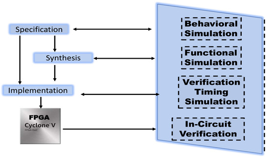 To recap, the typical flow of an FPGA consists of five main phases illustrated in Figure 4, which are behavioral simulation, functional simulation, static analysis, post-layout timing simulation and in-circuit verification.