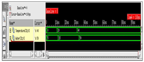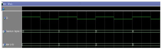 The synthesis and implementation results presented in this section were obtained with Altera’s Quartus II synthesis tool targeting a DE1 Altera Cyclone V FPGA. The functionality of the RTL implementation produced by our compiler has been validated by RTL simulation. (Figure 8) shows that the temperature at 20 °C corresponds to 15 at 100% relative humidity level. This method can be applied in any type of environment to obtain improved performance to control temperature and humidity levels.