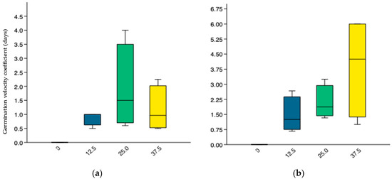 - Al-Mudaris, M.A. Notes on various parameters recording the speed of seed germination. Der Trop. J. Agri. Trop. Subtrop. 1998, 99, 147–154. Available online: https://www.jarts.info/index.php/tropenlandwirt/article/view/1495 (accessed on 10 September 2021).
