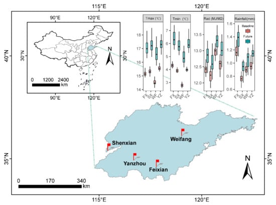 Four sites (Shenxian: SX; Yanzhou: YZ; Feixian: FX; Weifang: WF) located in Shandong province used for simulations in this study.