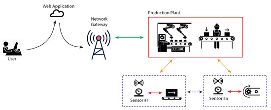 The company coconut oil extraction system can be viewed as a smart framework that includes all of the necessary functions to perform autonomous sensor acquisition, local data storage and remote transmission. All collected data, exchanged by using a sensor network and a base station (network gateway), are shared with the user via the cloud. Therefore, the smart production architecture (Figure 4) provides a web user interface, allowing the users to log in and display and analyze the historical data series for a single sensor or for a whole plant. The set of sensors is composed of independent devices, each being identified by an ID and responsible for collecting data of a specific production plant part (e.g., bottle pick and place, conveyor belt, etc.). An electronic device autonomously collects the sensor data and then uses a wireless protocol to send the data to the base station. Then, the collected data are sent from the base station (which acts as a gateway) to the cloud through a direct internet connection. It must be highlighted that the collected data refer to the production plant (e.g., energy consumption, produced quantities, etc.), to the coconut oil quality (detection of polyphenols quantity in the oil, etc.) and to the health status of the production plant and its parts (detection of hardware failure conditions). Finally this information is properly elaborated on to update the available raw materials database, to check the quality of the production and to perform, if needed, maintenance activities.