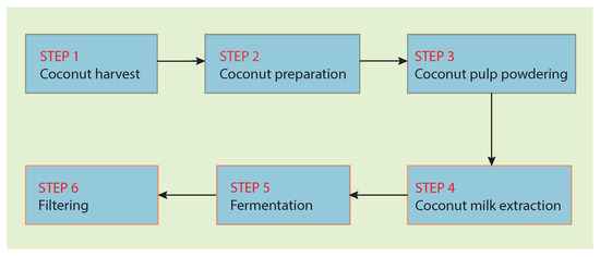 Figure 5 and Figure 6, respectively, describe the main steps both related to the fermentation-based and standard oil coconut extraction process.