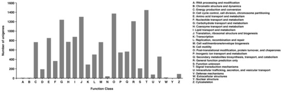 - Tatusov, R.L.; Fedorova, N.D.; Jackson, J.D.; Jacobs, A.R.; Kiryutin, B.; Koonin, E.V.; Krylov, D.M.; Mazumder, R.; Mekhedov, S.L.; Nikolskaya, A.N. The COG database: An updated version includes eukaryotes. BMC Bioinform. 2003, 4, 41. [Google Scholar] [CrossRef]