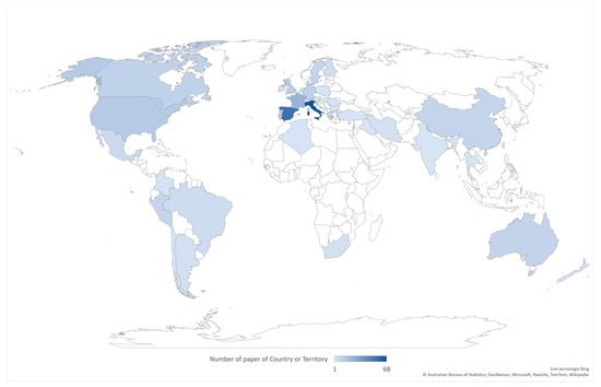 Number of papers published in different countries or territories. (Source: our elaboration).