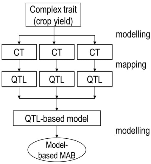 In short, QTL-based crop modelling, combining ecophysiological modelling and genetic mapping, can dissect complex yield traits into component traits, integrate effects of QTLs of the component traits over time and space at the whole-crop level, and predict the yield of various allele combinations under different environmental conditions.