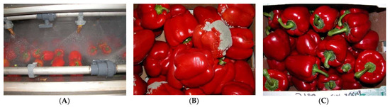 - Meir, S.; Rosenberger, I.; Aharon, Z.; Grinberg, S.; Fallik, E. Improvement of the postharvest keeping quality and colour de-velopment of bell pepper (cv.‘Maor’) by packaging with polyethylene bags at a reduced temperature. Postharvest Biol. Technol. 1995, 5, 303–309. [Google Scholar] [CrossRef]