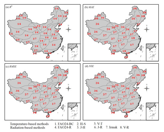 3.4. Recommended Empirical Methods in Different Agricultural Zones