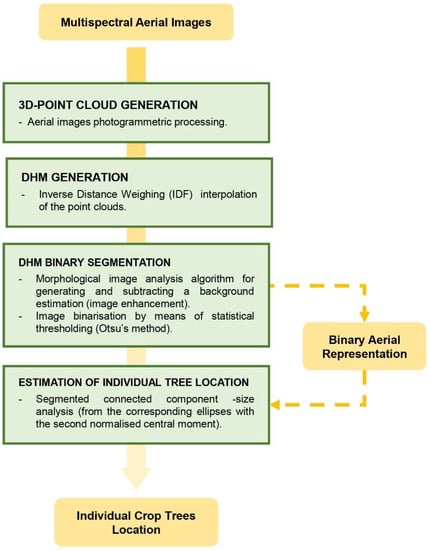 - Recio, J.A.; Hermosilla, T.; Ruiz, L.A.; Palomar, J. Automated extraction of tree and plot-based parameters in citrus orchards from aerial images. Comput. Electron. Agric. 2013, 90, 24–34. [Google Scholar] [CrossRef]