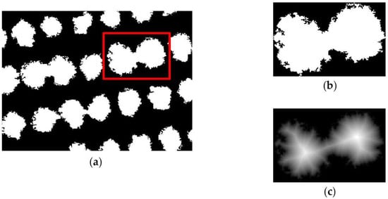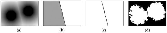 - Maurer, C.R.; Qi, R.; Raghavan, V. A linear time algorithm for computing exact Euclidean distance transforms of binary images in arbitrary dimensions. IEEE Trans. Pattern Anal. Mach. Intell. 2003, 25, 265–270. [Google Scholar] [CrossRef]