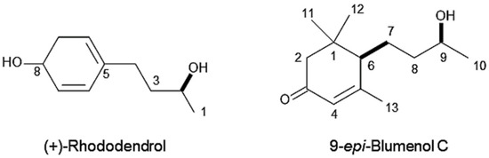 Chemical structures of (+)-rhododendrol and 9-epi-blumenol C.