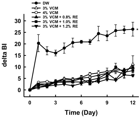 | 3% VCM + 0.8% RE | 4.37 ± 0.03 * |