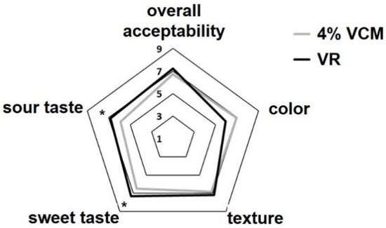 3.5. Sensory Evaluation with VCM and RE Combination