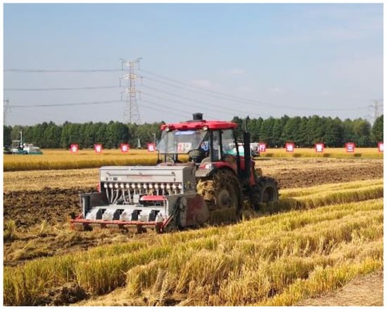 The rice–wheat rotation system is the main farming system in the Yangtze River Delta region in China. When sowing wheat in this agronomic model, sowing should be completed 2 weeks after the rice is harvested. The sown area and yield of wheat under this agronomic model account for 20% and 22% of China’s total wheat sown area and total wheat yield, respectively. It is one of the main modes of grain production in China [