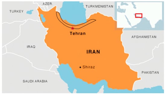 Geographic map (marked location) of sampling sites for M. aquatica plants from the Hyrcanian hotspot of Iran.