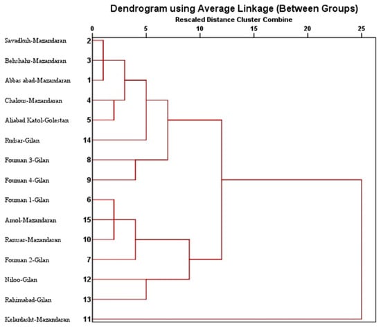 Dendrogram of cluster analysis for morphological traits of M. aquatica populations from the Hyrcanian hotspot of Iran.