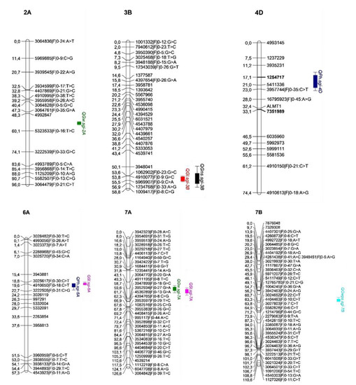 - Fan, X.; Cui, F.; Ji, J.; Zhang, W.; Zhao, X.; Lui, J.; Meng, D.; Tong, Y.; Wang, T.; Li, J. Dissection of pleiotropic QTL regions controlling wheat spike characteristics under different nitrogen treatments using traditional and conditional QTL mapping. Front. Plant Sci. 2019, 10, 187. [Google Scholar] [CrossRef]