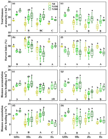 | Biomass accumulation before heading | ns | ** | ns | ** | ** | ns | * | ** | ns | ns | ** | ns |