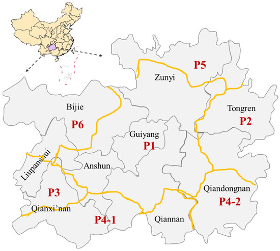 The six ecologically distinct rice farming regions in Guizhou Province.