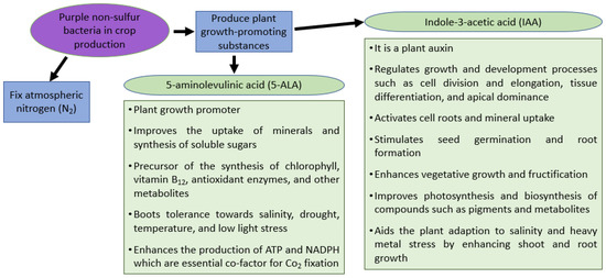 - Sakarika, M.; Spanoghe, J.; Sui, Y.; Wambacq, E.; Grunert, O.; Haesaert, G.; Spiller, M.; Vlaeminck, S.E. Purple Non-Sulphur Bacteria and Plant Production: Benefits for Fertilization, Stress Resistance and the Environment. Microb. Biotechnol. 2020, 13, 1336–1365. [Google Scholar] [CrossRef] [PubMed]