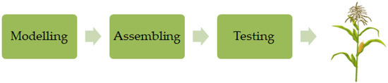 Approaches made on genomics and breeding technologies facilitate the development of breeding by design (BD) where the allelic variation of the genes with agronomic importance can be controlled [120] so the breeder can design new in silico superior genotypes [121] (Figure 3). Due to the accuracy of this process, the breeder can ignore the selection by phenotyping and evaluate only the superior varieties for field performance [121]. The BD technique involves three stages: mapping loci that are influencing all agronomical relevant traits; assessing the allelic variation at those loci; and breeding by design using desirable alleles of different loci [121,122]. Thus, the BD approaches the possibility to predict the result of a set of crosses based on molecular marker information. This method has been mentioned in the development of higher-quality maize cultivars. The most effective use of the BD method, on the other hand, will come from incorporating the most powerful genomic tools into the breeding process, which will allow the improvement of predictions [123].
