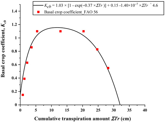 Figure 4. The basal crop coefficient (Kcb) of potato as a function of cumulative transpiration (∑Tr) (parameter values of Kcb function were obtained by fitting to values reported by Allen et al. (1996).