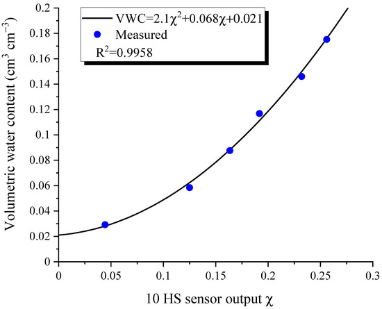 Figure 5. Calibration function for 10 HS sensor in sandy soil in experiment plot.