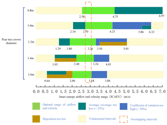 Corresponding suitable inner canopy airflow end velocity intervals for different crown diameters.