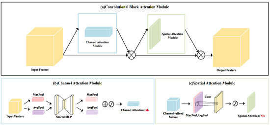As shown in Figure 5 below, the Convolutional Block Attention Module (CBAM) [22] consists of two independent sub-modules: the Channel Attention Module (CAM) and the Spatial Attention Module (SAM), which pay attention to the relationships between channels and spaces, respectively. It automatically learns the importance of different channel features and different spatial features. In addition, as a lightweight general-purpose module, the CBAM can be easily integrated into Convolutional Neural Network (CNN) architecture without additional overhead.