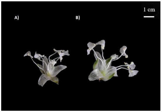 - Zahumenická, P.; Fernández, E.; Šedivá, J.; Žiarovská, J.; Ros-Santaella, J.L.; Martínez-Fernández, D.; Russo, D.; Milella, L. Morphological, Physiological and Genomic Comparisons between Diploids and Induced Tetraploids in Anemone sylvestris L. Plant Cell Tissue Organ Cult. 2018, 132, 317–327. [Google Scholar] [CrossRef]