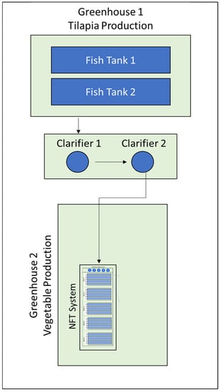 Aquaculture, or the farming of fish and other aquatic organisms, currently accounts for 50% of the world’s total fish and fish-related products. Aquaculture is one of the fastest growing food-producing sectors worldwide [1,2]. Total aquaculture production comprising human food aquatic animals reached 87.5 million tonnes in 2022 even amid the COVID-19 pandemic [3]. Integrating aquaculture with hydroponic plant production, also known as aquaponics, seeks to maximize resource use efficiencies and minimize negative environmental impacts of aquaculture [2,4,5,6]. In these integrated systems, ammonia (NH3) waste excreted by fish converted by nitrifying bacteria into nitrate (NO3−), forms the basis for pairing hydroponics with aquaculture. In the system, the nutrient-rich aquaculture effluent is used to fertilize plants for production, where the plants filter the water, before being recirculated back to the aquaculture unit or discharged to the environment or re-used in some other way [1,4,6,7,8,9].
