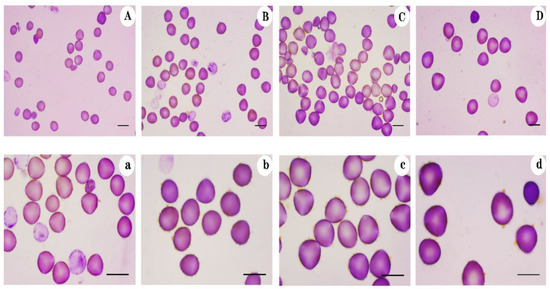 - Katsiotis, A.; Forsberg, R.A. Pollen grain size in four ploidy levels of genusAvena. Euphytica 1995, 83, 103–108. [Google Scholar] [CrossRef]