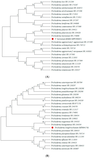 - Jiang, Y.; Wang, J.L.; Chen, J.; Mao, L.J.; Feng, X.X.; Zhang, C.L. Trichoderma Biodiversity of Agricultural Fields in East China Reveals a Gradient Distribution of Species. PLoS ONE 2016, 11, e0160613. [Google Scholar] [CrossRef]