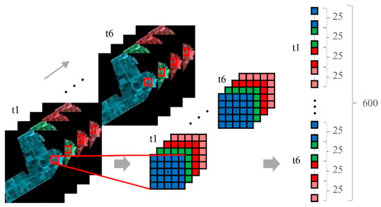 w = 5 pixels. This process extracts spectral-spatial-temporal features for all pixels. For each pixel