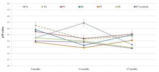 Figure 5. Silage pH value changes upon storage for 5, 11 and 17 months.