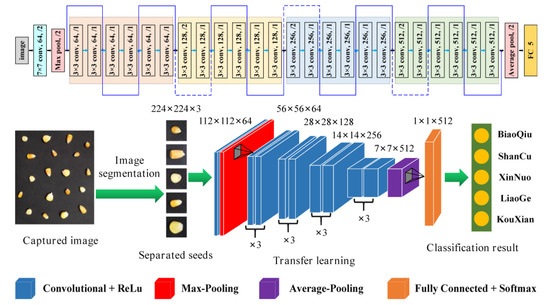 It is worth mentioning that the newly improved model architectures combined with transfer learning such as P-ResNet showed the best accuracy to classify maize seeds in a non-destructive, fast and efficient manner [118]. The process is given in Figure 6. The result highlighted the advantages of transfer learning and its potential in deep learning, providing new solutions for CNN-based computer vision and spectroscopic techniques for seed classification and detection.