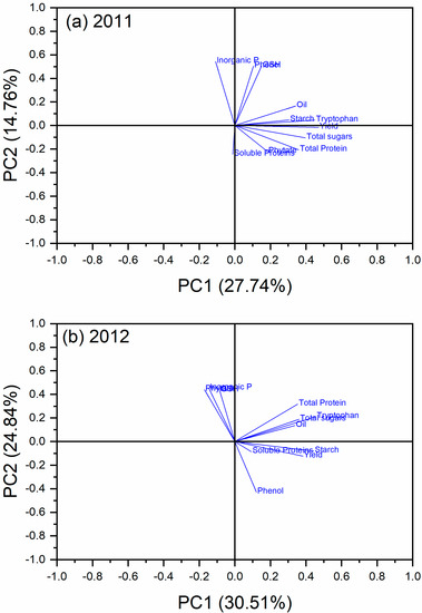 | Soluble protein (g kg−1) | Starch (%) | |||||||||||||||