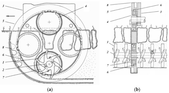 - Kalinichenko, V.P. Device for Rotational Subsurface Loosening. RU Patent 2376737 C1. Available online: https://new.fips.ru/Archive/PAT/2009FULL/2009.12.27/DOC/RUNWC1/000/000/002/376/737/DOCUMENT.PDF (accessed on 29 December 2021).