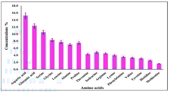 Samples of 1 mL of pure enzyme sample and 1 mg of protein were hydrolyzed by heating it for 24 h at 110 °C in a sealed, evacuated tube with HCl (6 N, 5 mL), and β-mercaptoethanol (10 mL). The excess HCl was removed by vacuum evaporation to dryness. Beckman Amino Acid Analyzer was used to determine amino acids in the sample [].
