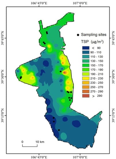 Distribution of total suspended particulate matter in city of Wuhai.