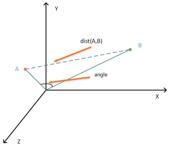 Schematic explanation of the CES module (dist means to calculate the Euclidean distance between vectors A and B; angle means the angle between the two vectors).