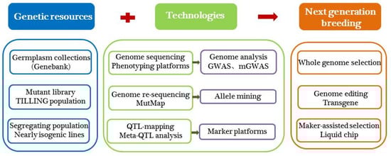 Most modern elite varieties were developed by conventional breeding, which may not be able to meet current demands. The new strategies, such as whole genome selection, genetic transformation, and genome editing, need to be actively utilized in current breeding programs, which will provide powerful opportunities for genetic improvement of fruit quality and accelerate the process of future breeding of melon (Figure 1).