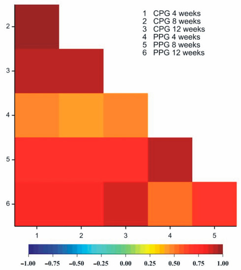 | LW | 0.03 | −0.39 | 0.59 | 0.58 | 0.76 * | 0.54 | 0.36 | −0.1 | 0.74 * | 0 | 0.76 * | |||||||
