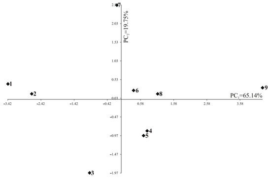 | Percentage of explained multivariate variability | 65.14 | 19.75 |