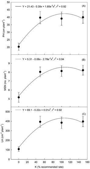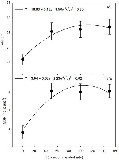 - Magare, P.; Jadhao, S.; Farkade, B.; Mali, D. Effect of levels of potassium on yield, nutrient uptake, fertility status and economics of cotton grown in vertisol. Int. J. Curr. Microbiol. Appl. Sci. 2018, 7, 1292–1300. [Google Scholar] [CrossRef]